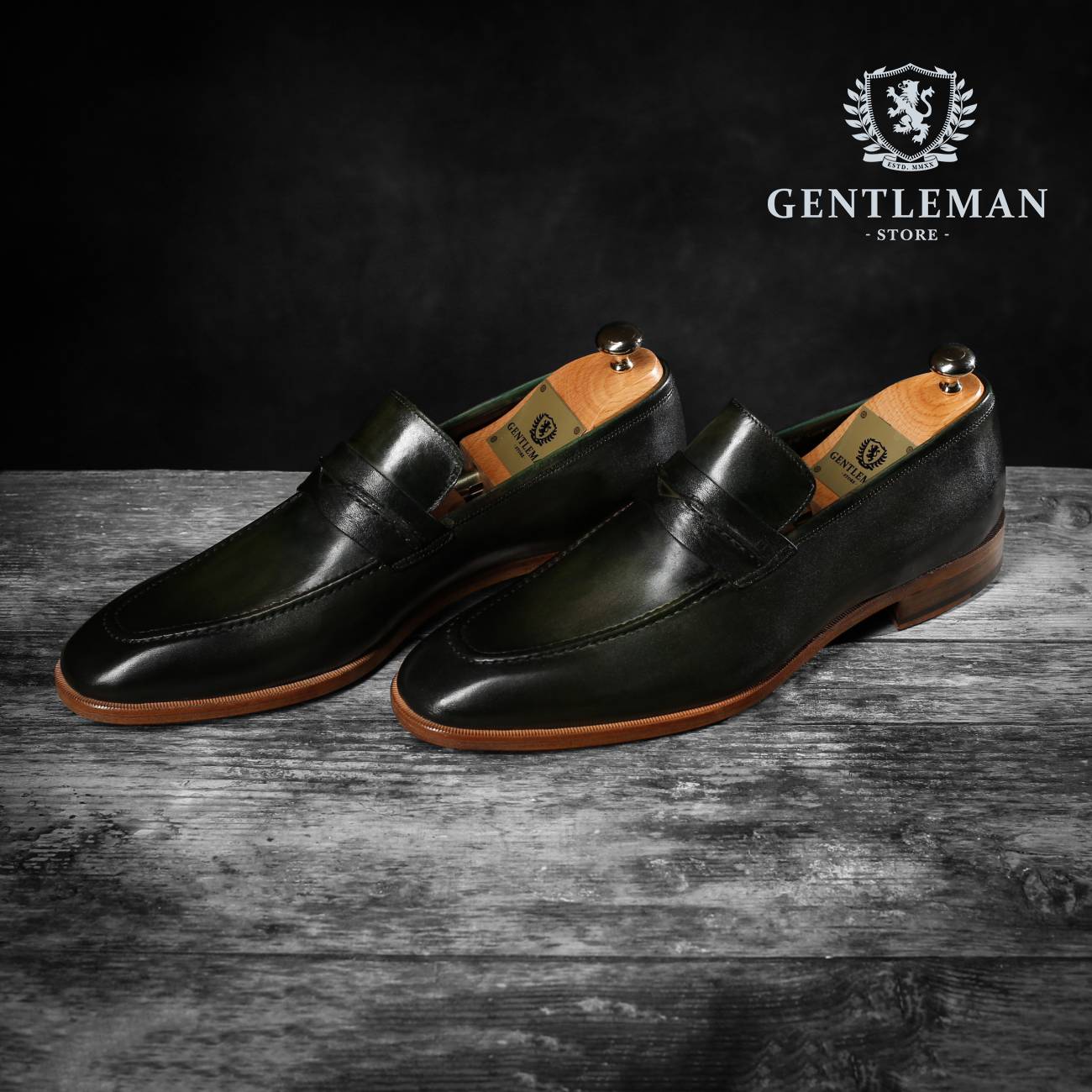 Luksuzne tamno zelene kožne cipele sa glatkom teksturom pogodne za svaku odevnu kombinaciju. Ručna izrada brenda Gentleman Shoes.