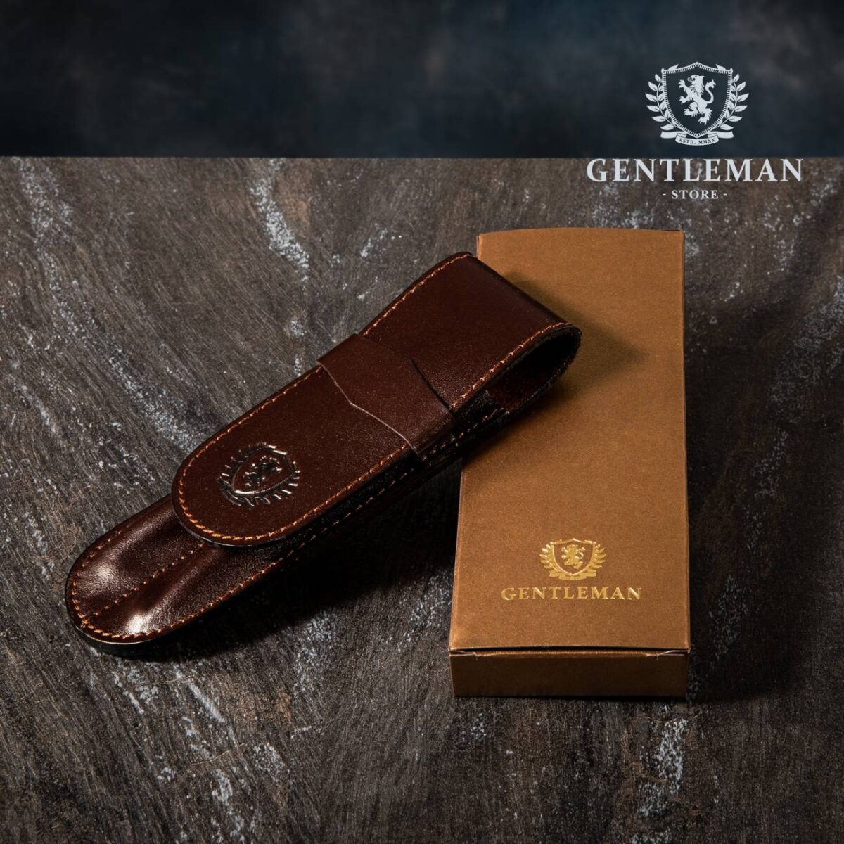 Ovaj proizvod kožna futrola za dve olovke brenda “Gentleman” je ručno izrađen od visokokvalitetne goveđe kože koja je postavljena čojom.