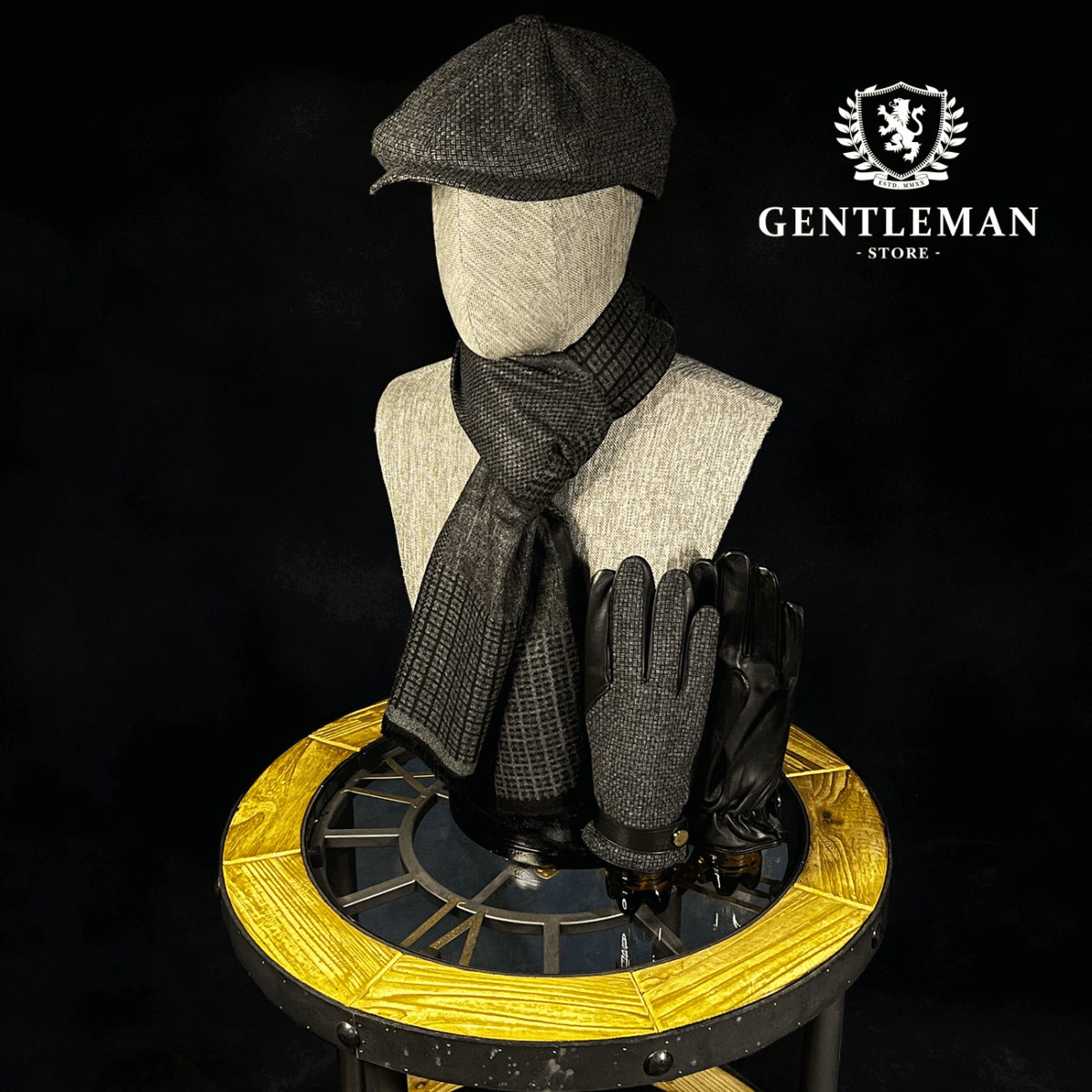 Gentleman set kapa, šal i rukavice sivo-crne boje će dati Vam jedinstven izgled i odgovarati svakoj Vašoj odevnoj kombinaciji.