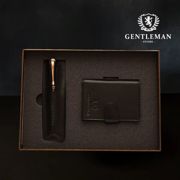 Ovaj 2 u 1 set sadrži dva artikla, olovku sa futrolom i card holder, koji su ručno izrađeni od visokokvalitetne goveđe kože, upakovani u luksuznu ambalažu.