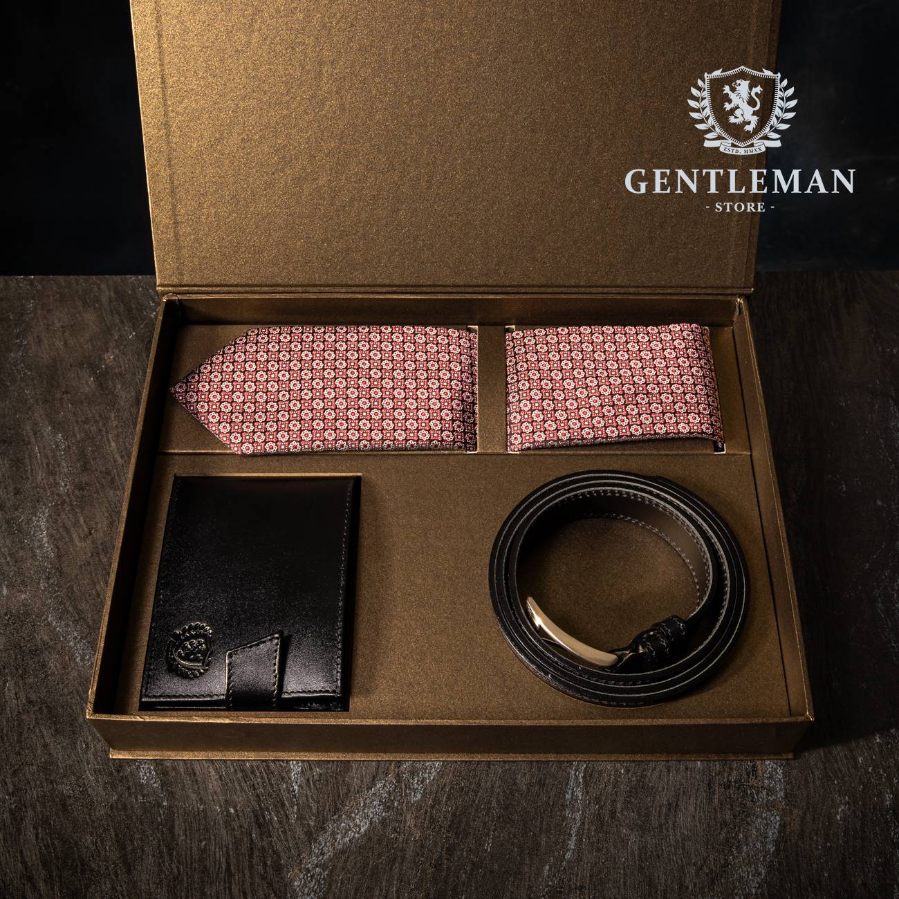 Ovaj poklon set sadrži tri artikla, kaiš, kravata i novčanik ručno izrađeni od visokokvalitetne goveđe kože, upakovano u luksuznu ambalažu.